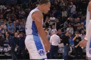 NBA常规赛,魔术主场128-122险胜骑士。比赛最后时刻骑士连进5个三分追到2分,贝恩在最后17秒命中三分杀死比赛。