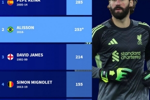 下一篇: 本赛季欧洲五大联赛中,拉亚是第一位达到联赛15场零封的门将