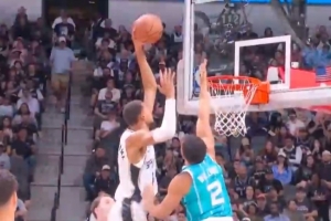 GIF-文班单打格威,转身轻松左手隔扣