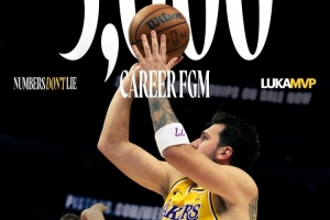 本场之前,东契奇生涯运动战进球数为4995个。上半场东契奇15中5,生涯命中数达到5000个。