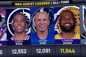 历史助攻榜:詹姆斯11944球排第4&距第3的基德147球 本赛季难超越