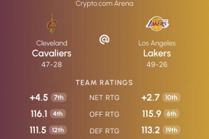 强强对话!骑士本赛季进攻、防守和净效率排名都在湖人之前