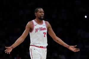 火箭输球之后战绩来到37胜22负,排在西部第三,只领先第四的掘金和第五的森林狼各自0.5个胜场。