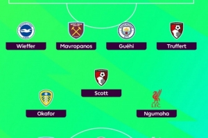希勒评英超32轮最佳阵:格伊领衔,恩古莫哈、奥卡福、凯莱赫入选