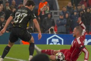 体育资讯04月15日讯 利物浦vs巴黎半场补时,麦卡利斯特铲倒内维斯,被出示黄牌。
