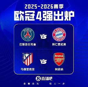 体育资讯4月16日讯 25/26赛季欧冠四强今天凌晨全部出炉,阿森纳、巴黎圣日耳曼、马德里竞技以及拜仁慕尼黑将在半决赛展开对决:巴黎vs拜仁,马竞vs阿森纳。