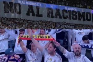 皇马球迷赛前在伯纳乌拉起横幅,反对种族歧视